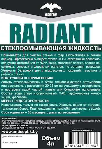 Стеклоомывающая жидкость RADIANT -20 4л.