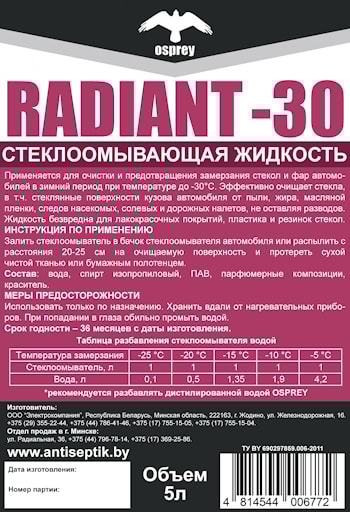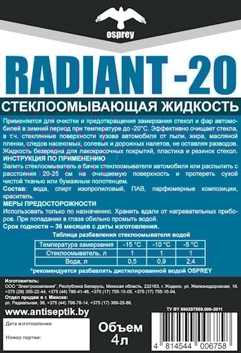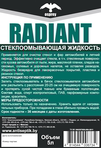Стеклоомывающая жидкость RADIANT летняя 4л