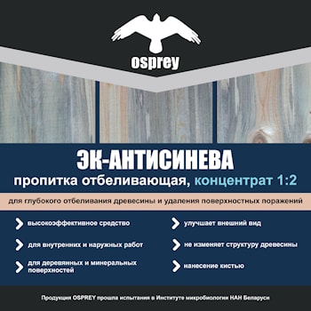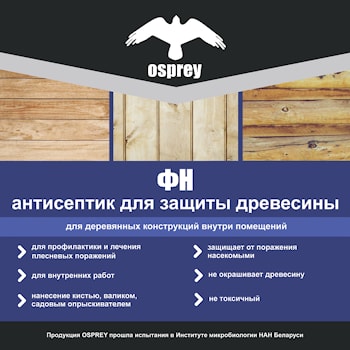 Купить декоративную пропитку Osprey бесцветную в Минске у производителя Электрокомпания. Пропитка антисептик тонирует изделия под ценные породы дерева. Защищает от грибков и древесной синевы. Доставка по Минску. Филиал компании в Жодино. Звоните! ...