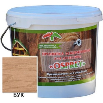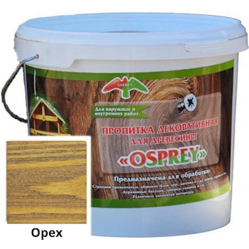 Декоративная пропитка OSPREY ТУ BY 690297859.018-2013 Лессирующий антисептик для древесины Для декоративной отделки деревянных изделий внутри и снаружи помещений тонирует под ценные породы древесины предотвращает образование грибковых поражений ...