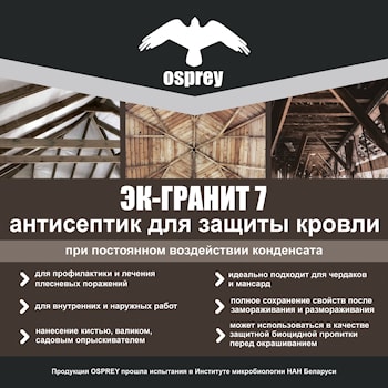 Антисептик для крыши ТУ BY 690297859.001-2008 Антисептик для древесины для нормальных условий эксплуатации для обработки каркасных конструкций при постоянном воздействии конденсата для профилактики и лечения от плесневелых грибов; для внутренних и ...