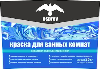 Краска для ванной водостойкая Краска акриловая водно-дисперсионная «OSPREY» ВД-АК-201 моющаяся для ванных комнат ТУ ВY 690297859.025-2014 Преимущества Устойчива к воздействию воды и высокой влажности Ровное, эластичное, матовое покрытие Хорошо ...